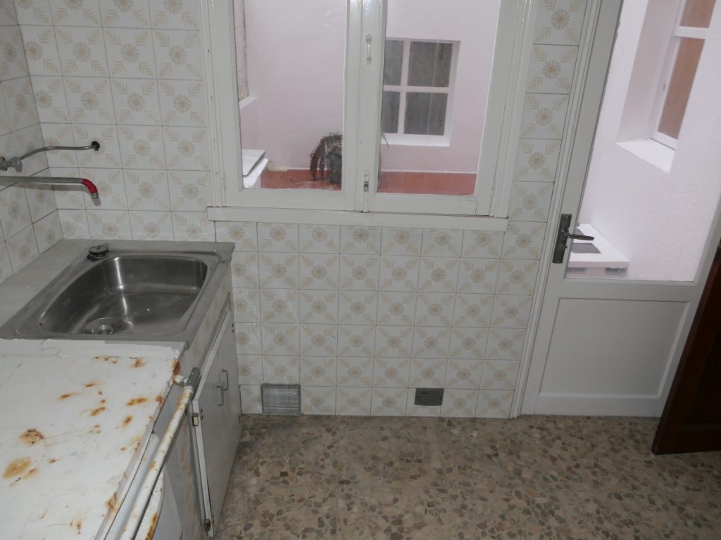Cocina interior con despensa, a patio de manzana, con acceso a terraza abierta.